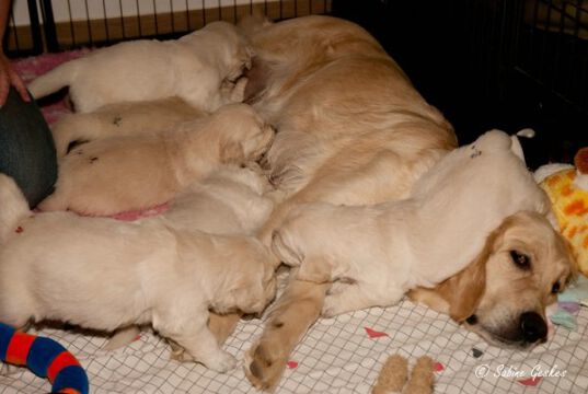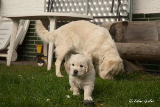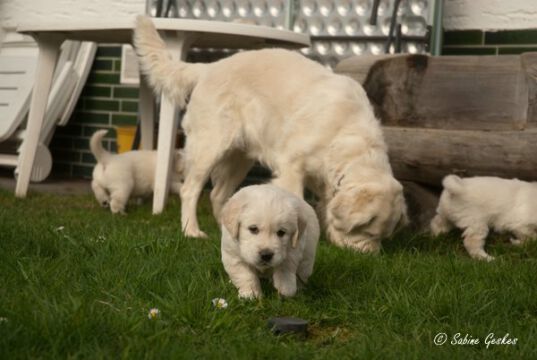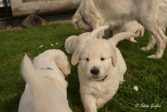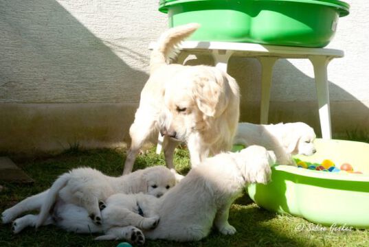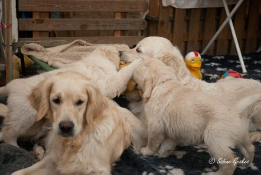 Luna (Hündin gelb) lebt jetzt bei Britta, Mirko, Silvia und Leo in Meckenheim