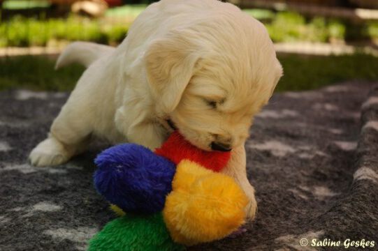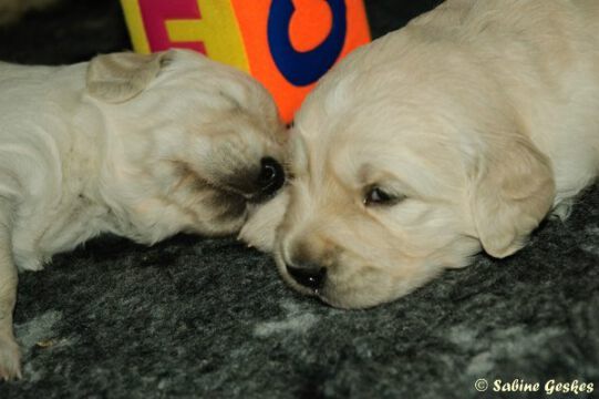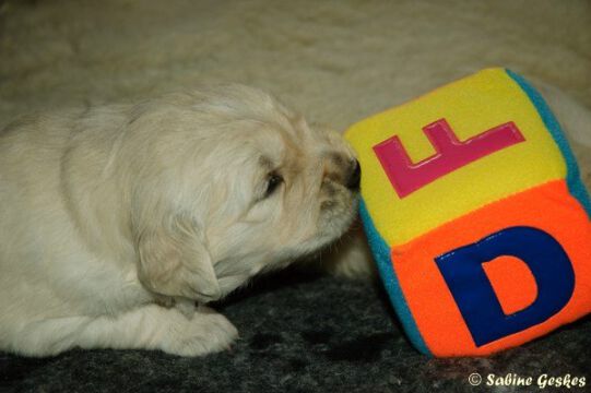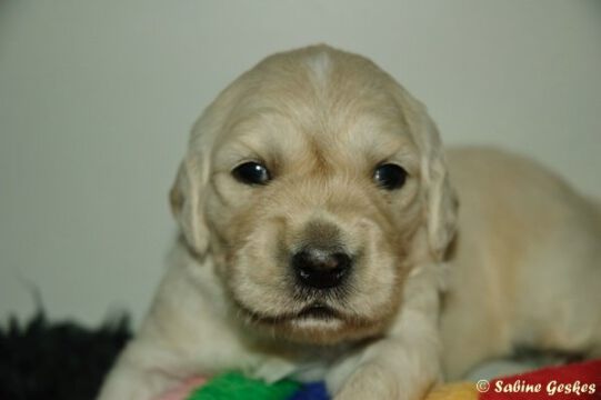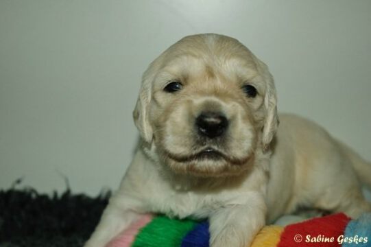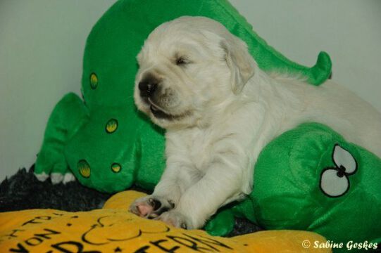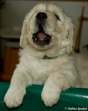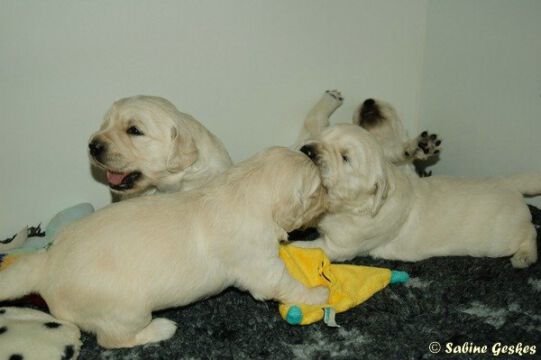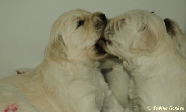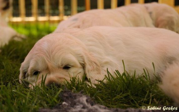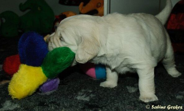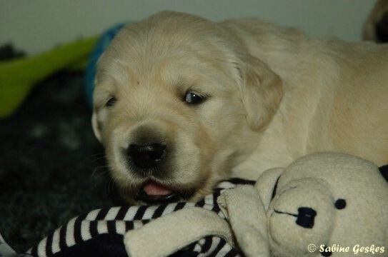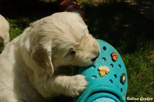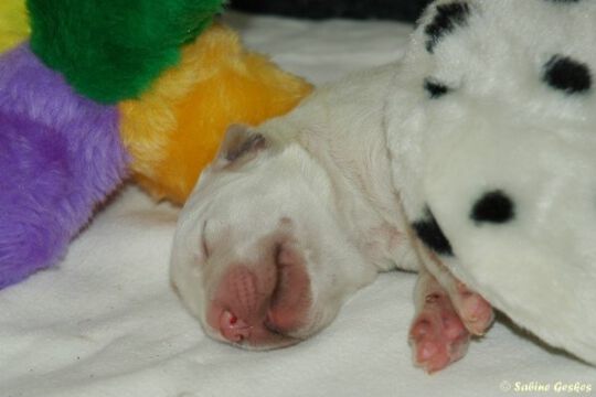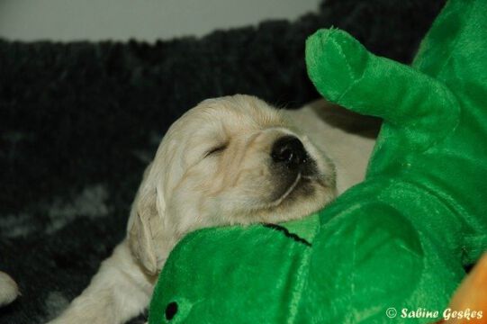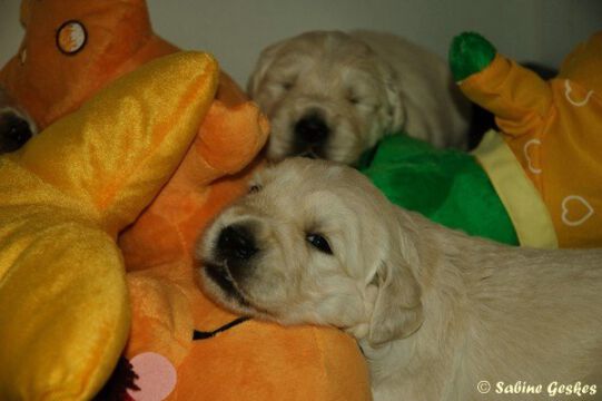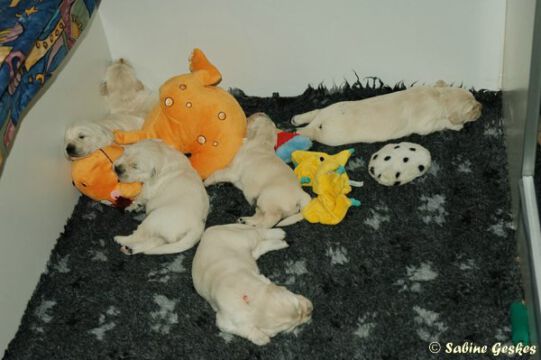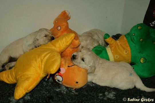 Mittlerweile ist die 7. Woche angebrochen und die Kleinen werden nur noch 2 Wochen bei uns sein. Sie sind schon wahnsinnig gewachsen, alle super gut drauf und auch Fröschlein ist trotz ihres „geringen“ Gewichtes ein ganzer Hund und mischt die Bande ordentlich auf. Wir haben wunderbare Familien gefunden, wo unsere kleinen Schützlinge ein tolles Leben haben werden und wir hoffen, dass wir zu jedem ein klein wenig Kontakt halten werden können. Wir werden sie irrsinnig vermissen, wenn sie nicht mehr bei uns sind und deswegen werden wir in den verbleibenden 14 Tagen jede Minuten mit unseren Schätzen verbringen und von Herzen genießen…