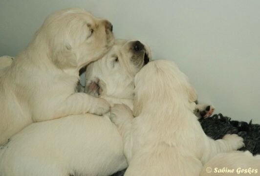 Samstag, 08.05.2010, wir gehen in die dritte Woche und alle Pupsies haben Ihr Geburtsgewicht nahezu verdreifacht und es geht ihnen blendend. Mit ihren süßen kleinen Äuglein erahnen sie langsam die Welt um sie herum und auch ihre Kriechbewegungen werden immer mehr zu holprigen Hüpf- und Stolperbewegungen. Wenn sie träumen, fechten sie vermutlich schon große Schlachten aus, so laut wie sie schon knurren und bellen. Es ist zu süß. Wenn Mama nicht da ist, der Magen aber gar übel knurrt, wird auch sehr lautstark protestiert und geschimpft…
